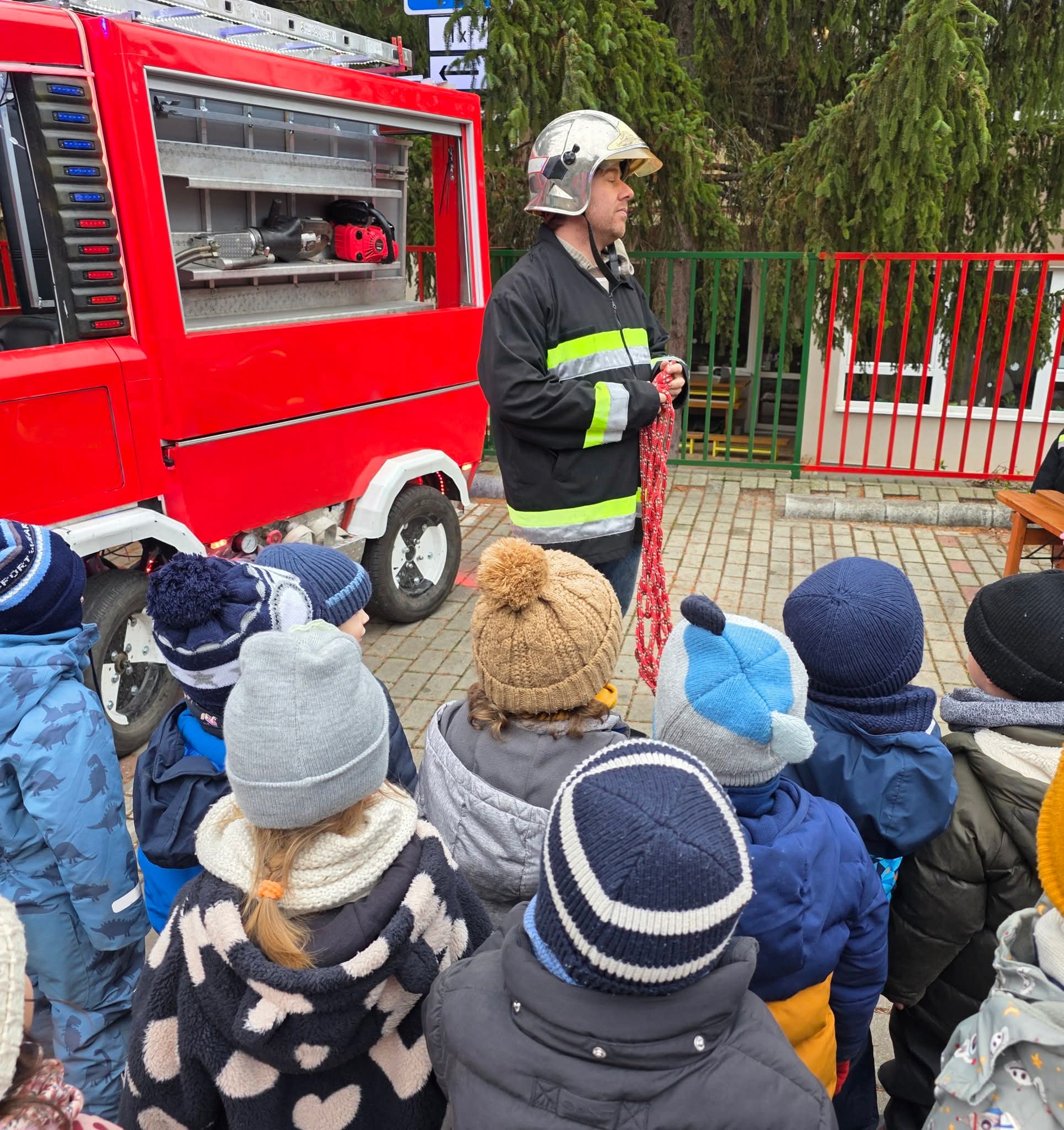 Tűzoltó nap Ma egy rendkívül izgalmas és tanulságos napot tölthettek a gyerekek az óvodában! 🚒 Látogatást tett nálunk a Tűzoltóság, fantasztikus bemutatóval készültek emellett bábelőadással, játékokkal és tuzoltassal is készültek az ovisok számára. Köszönjük a Tűzoltóságnak ezt a felejthetetlen élményt!